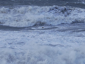The wind battered on unabated but my gamble no 4: birds would be everywhere due to the storm was not materialising. Very little on the sea and the fact that the warden, David Walker was not out at the sea watch hide was a good indication that it was not worth being there. By now, I was covered in salt spray, as were my optics, especially glasses that were caked in salt. The waves were certainly powerful.